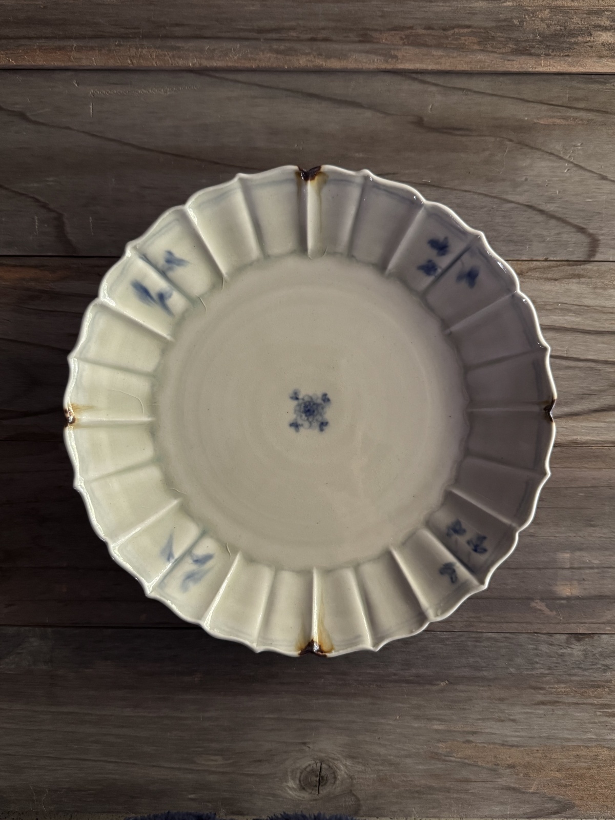 素朴だけど縁のヒラヒラとしたプリーツのような輪花型が華やかでおもてなしの器としてもお使いいただけます。