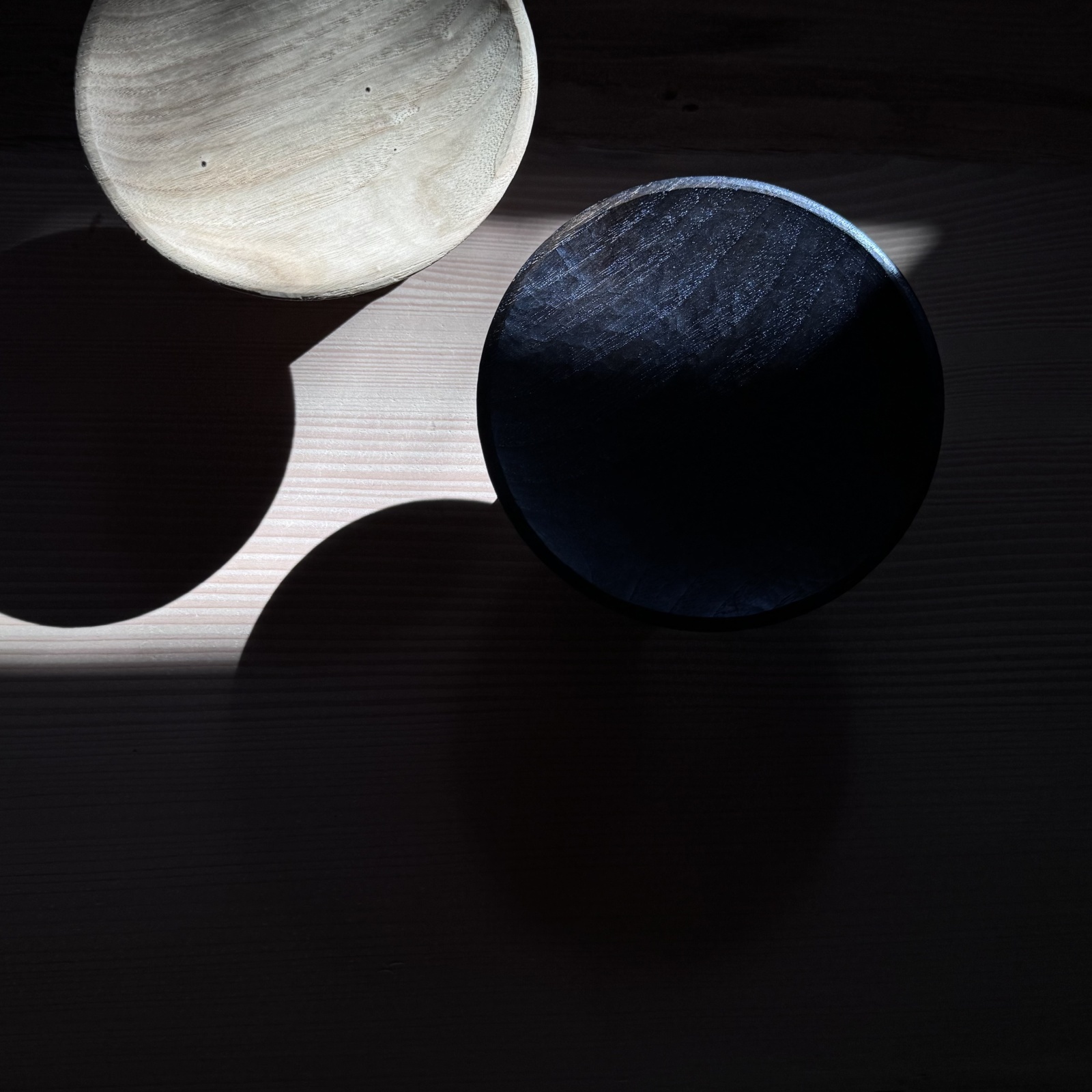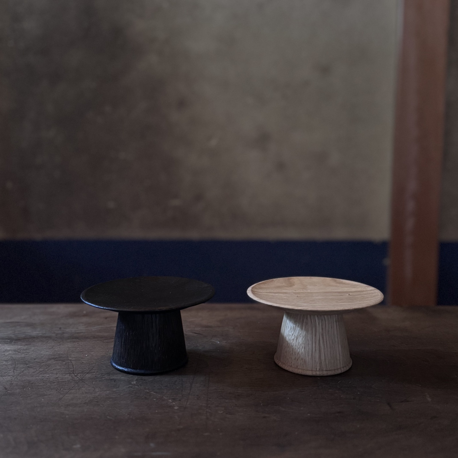 色は木地のナチュラル色と拭き漆の黒になります。