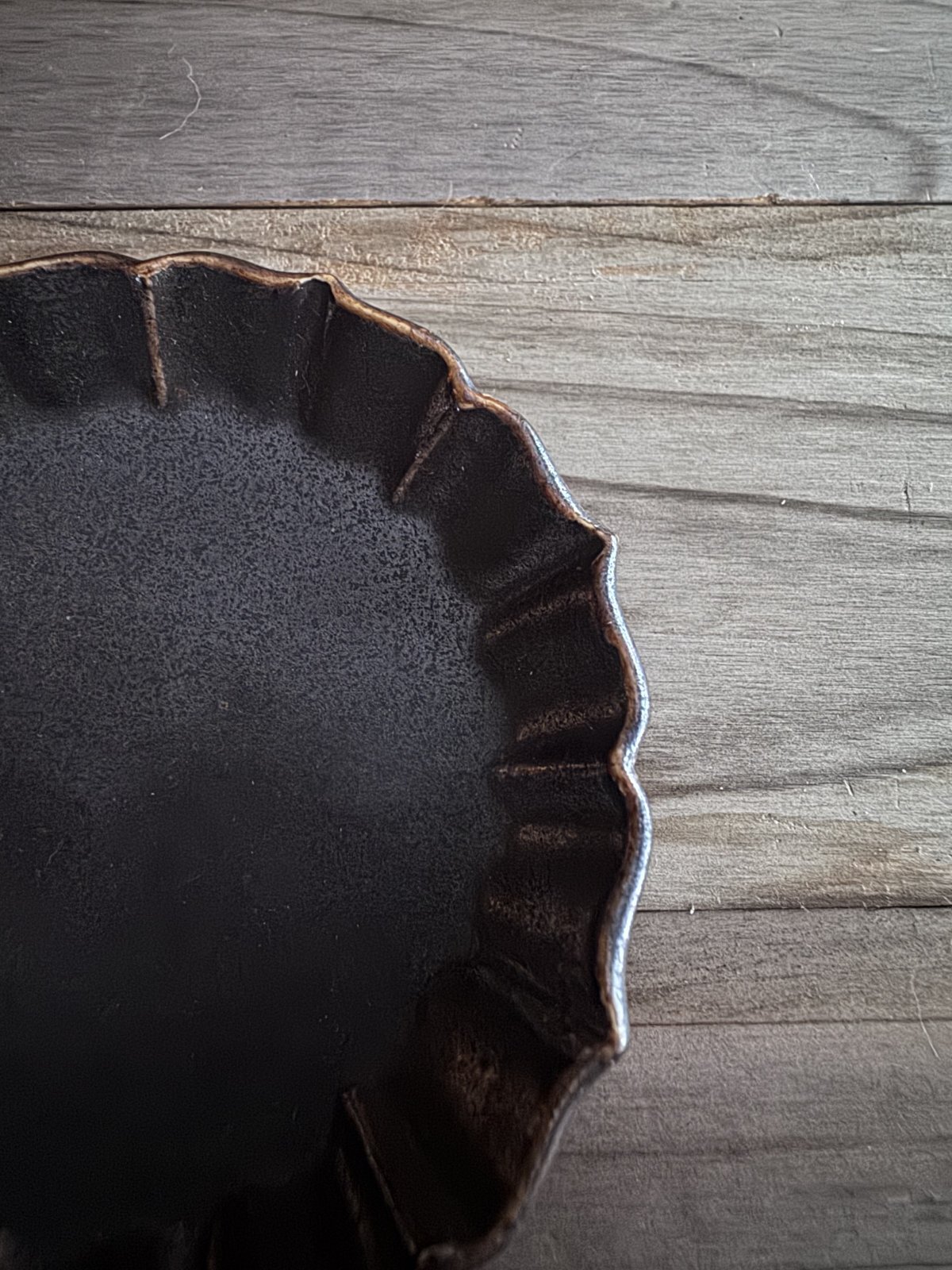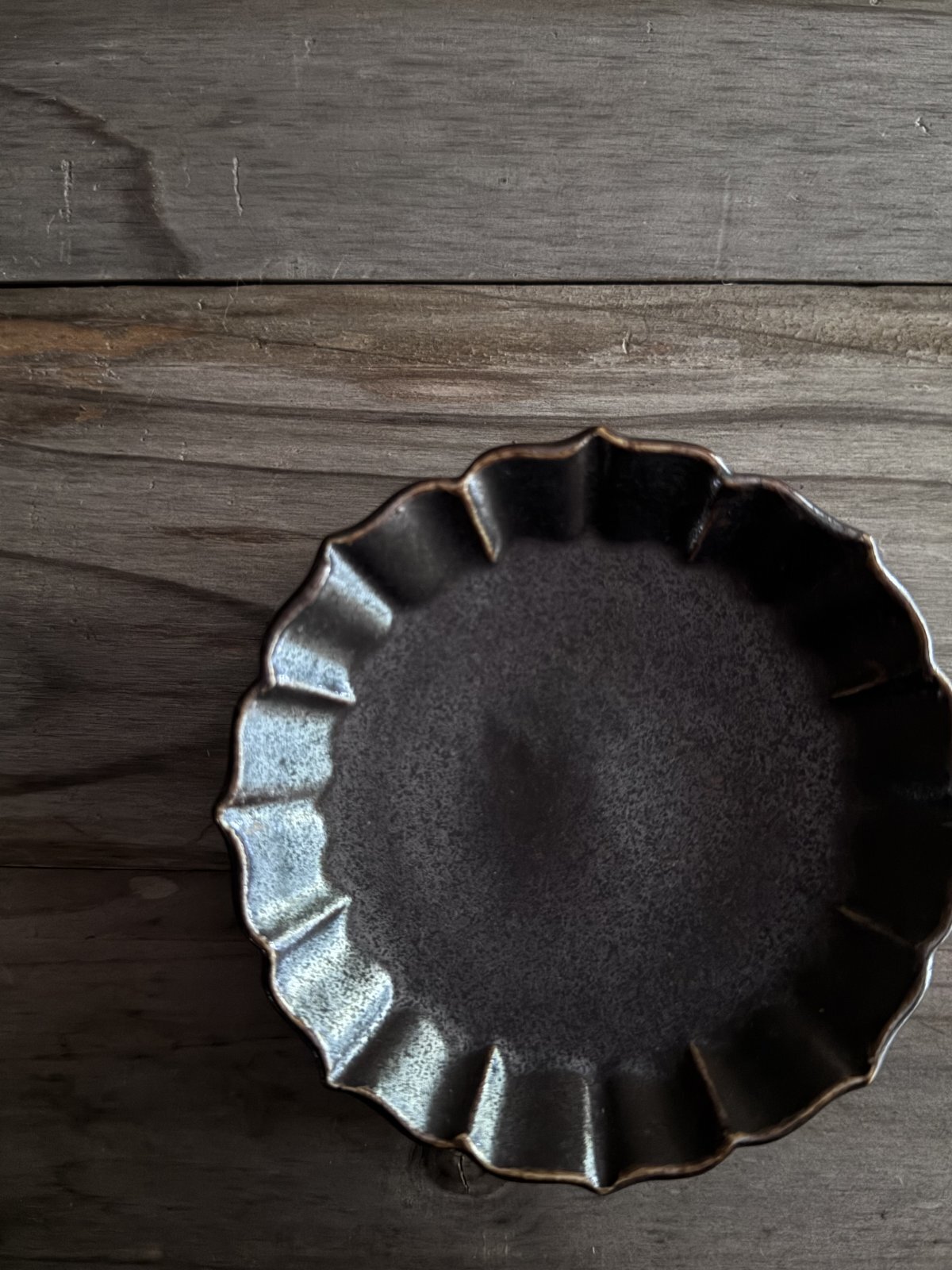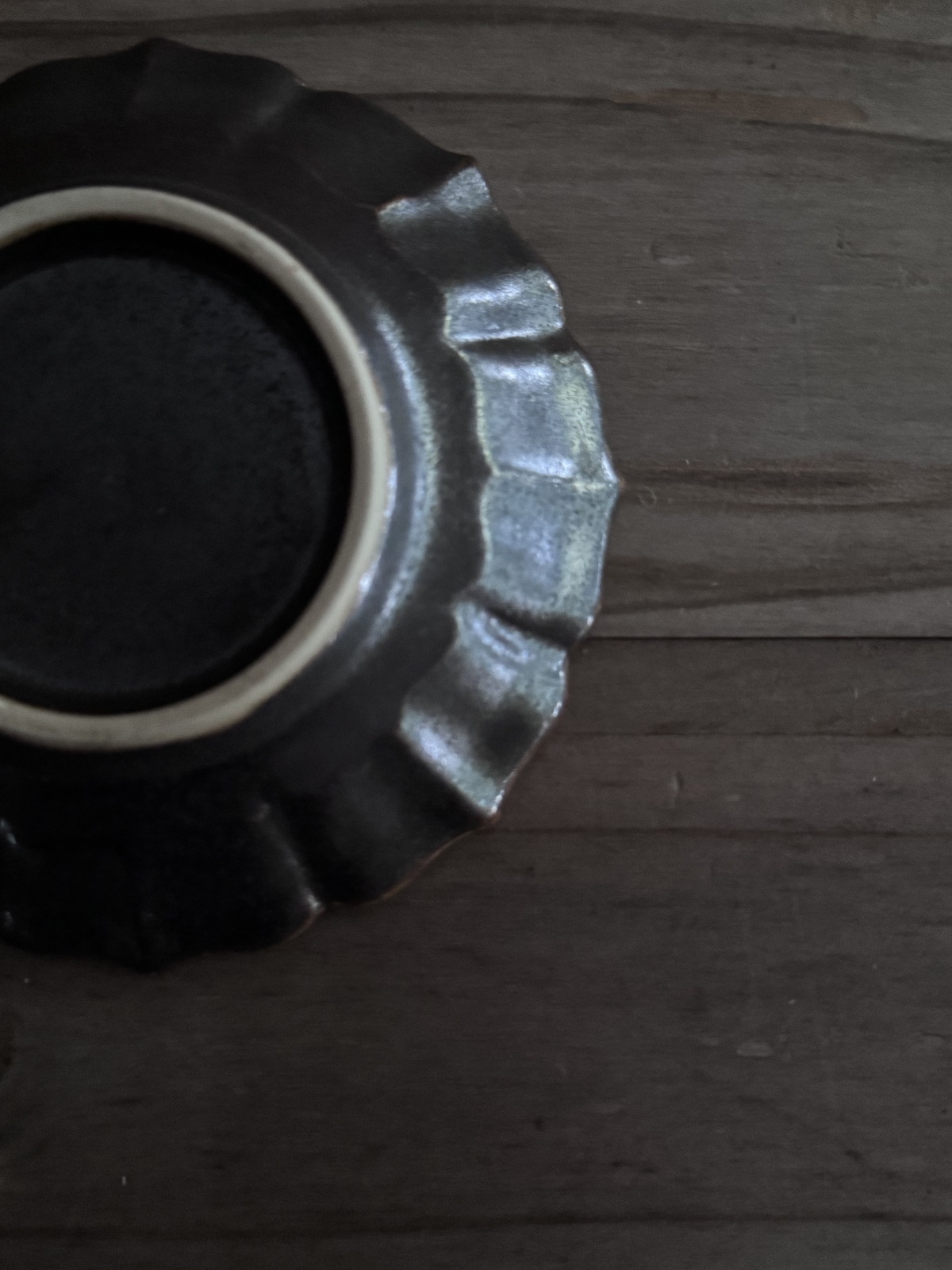 褐色が渋い印象ですが、輪花型が華やかで、食卓にあると嬉しくなるような器です。