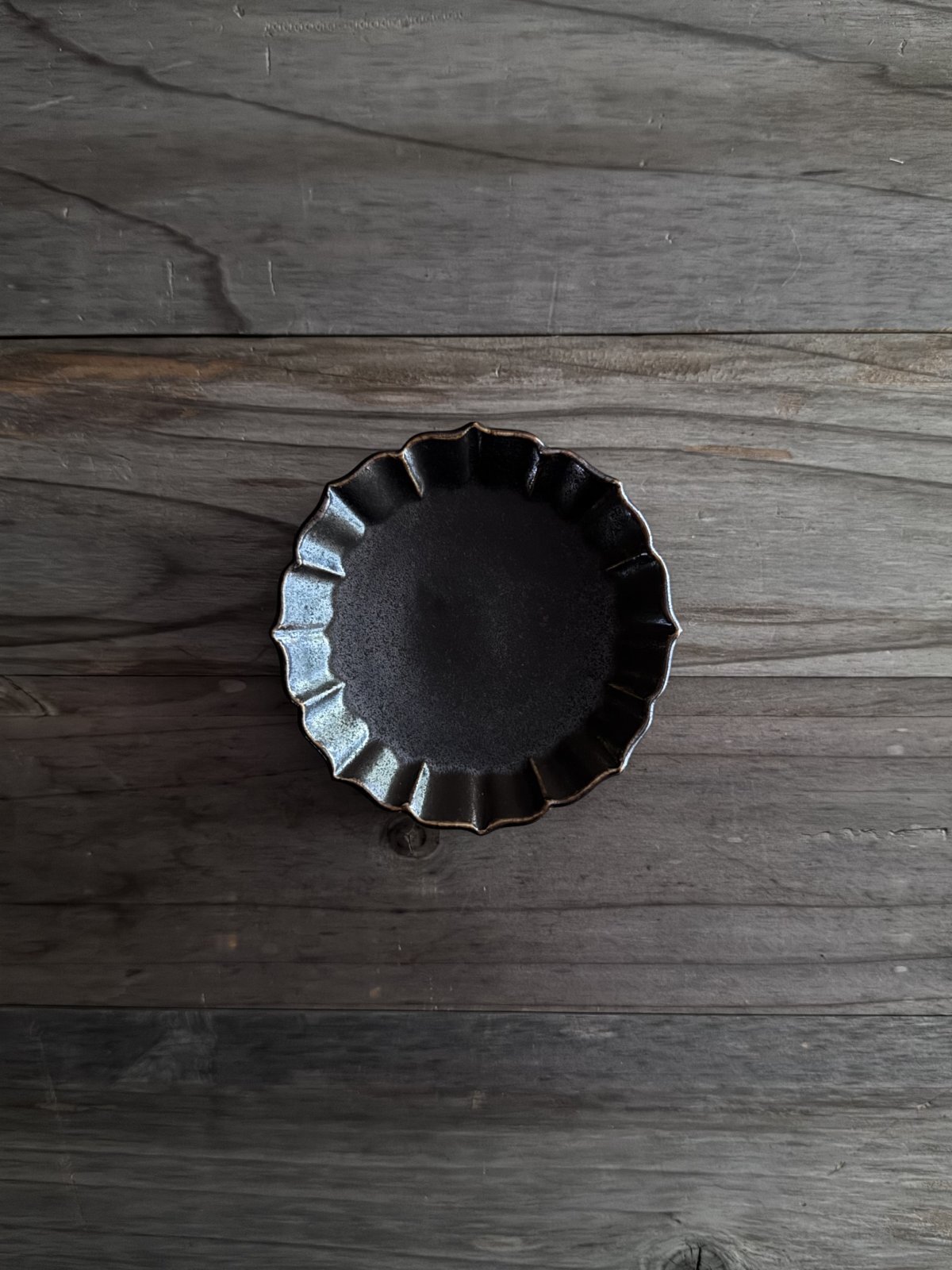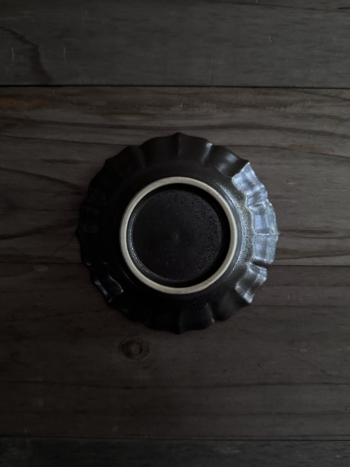 滋賀県で作陶されている鈴木まどかさんの褐釉稜花小皿です。