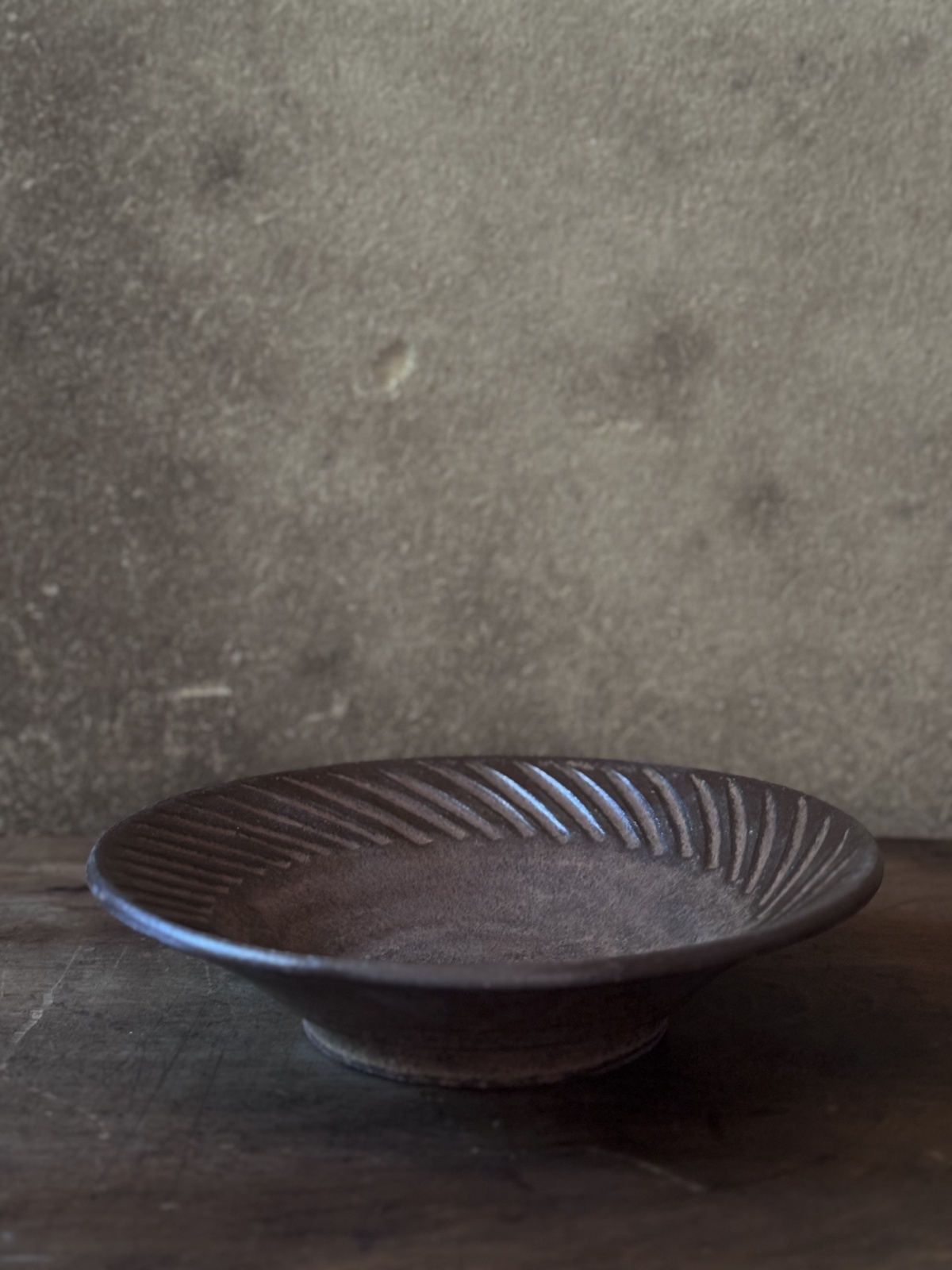 小澤基晴さんのブロンズしのぎぐるぐる8寸皿です。